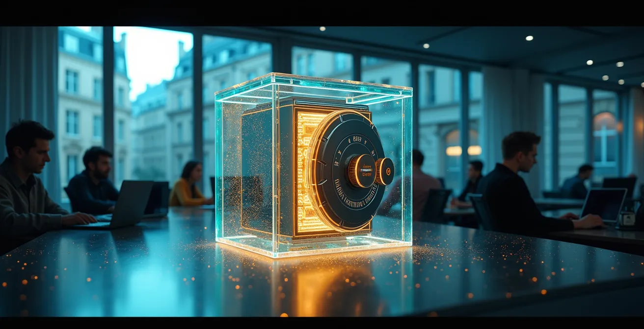 L’illustration ci-dessous symbolise cette posture de gardien : non pas une forteresse obscure et angoissante, mais un mécanisme de précision, transparent et maîtrisé, où chaque pièce a son rôle dans la protection de votre identité.
